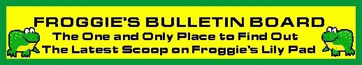 Welcome to Froggie's Bulletin Board. Check back regularly for any late breaking news regarding updates on my homepage!